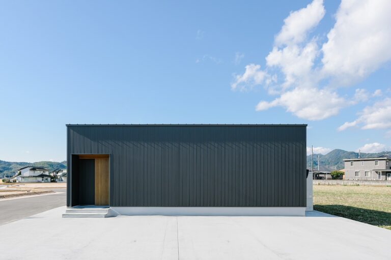 シンプルなガルバリウム外壁の認定長期優良住宅の平屋