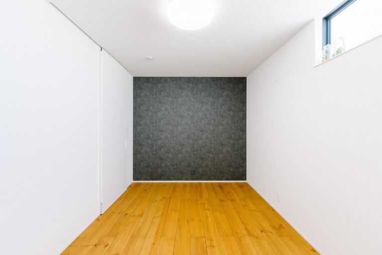白色のベースのクロス。グレークロスを入れつつ扉やニッチの凹凸のある部分を白と木材色の2色でなじませてます。