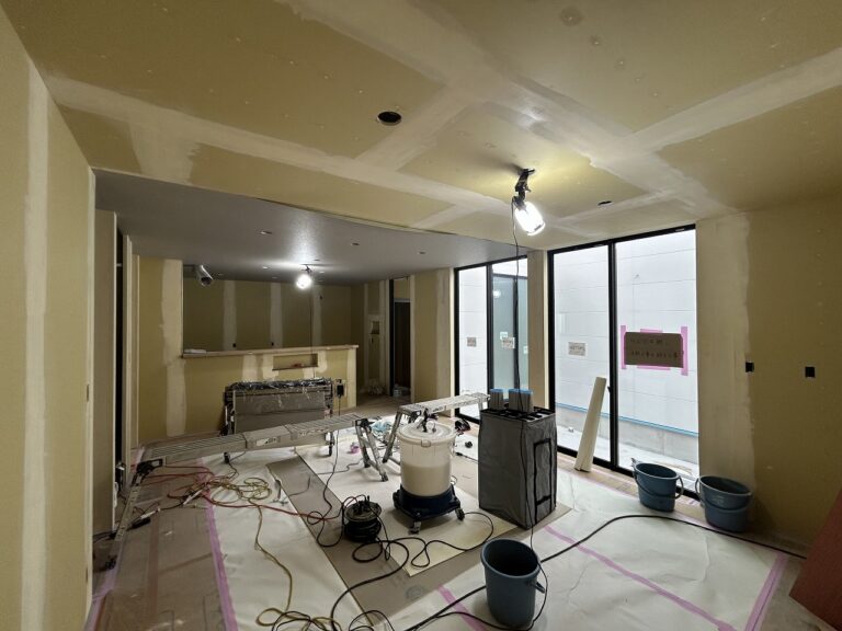 内部は大工さんの工事が終わり、仕上げ工事のスタートです。
